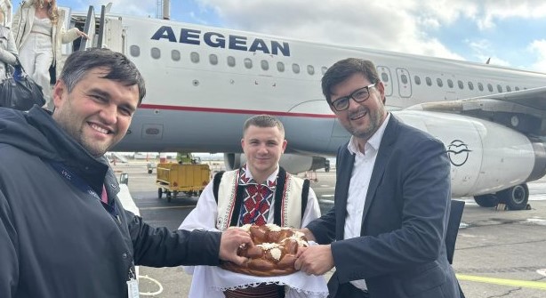 Самолет, совершивший первый рейс Афины-Кишинев, приземлился сегодня в Международном аэропорту Кишинева. Его встретили проходом на платформу под водной дугой, созданной двумя пожарными машинами, а первых присутствовавших пассажиров и официальных лиц представители аэропорта традиционно встретили хлебом-солью.