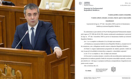 Депутат парламентской группы «За Молдову» Сергей Сырбу зарегистрировал 10 декабря поправку к законопроекту No. 477 от 1 декабря 2020 г. о функционировании...