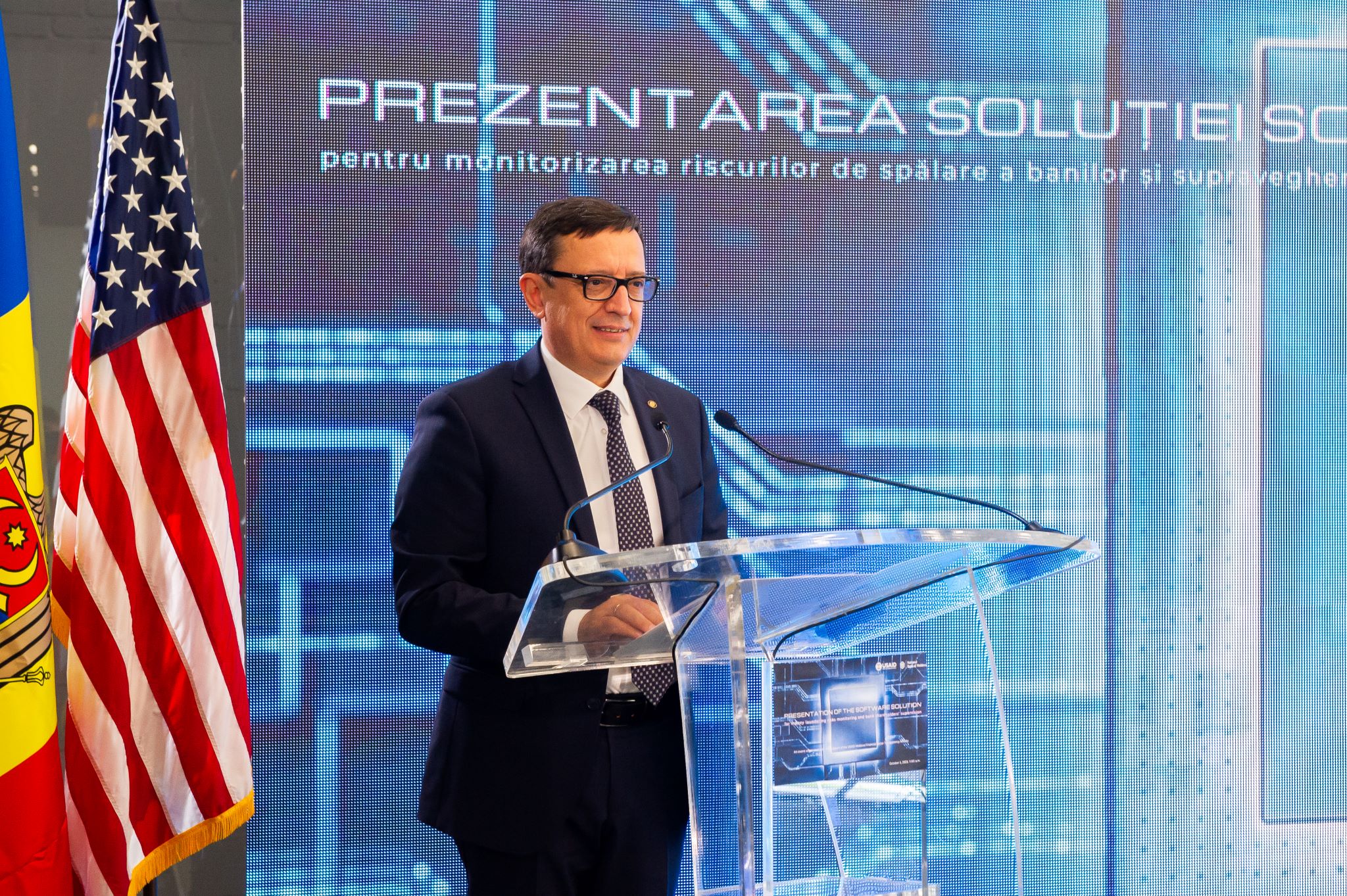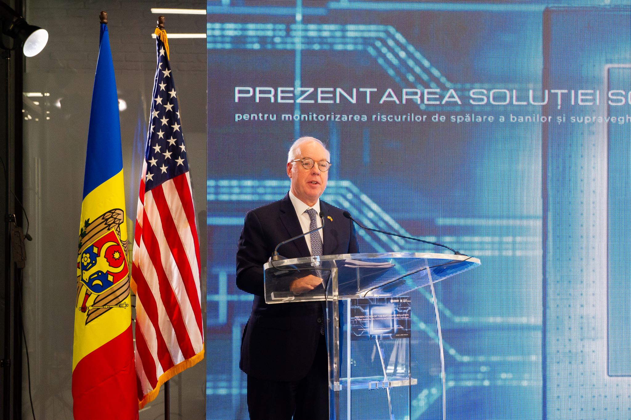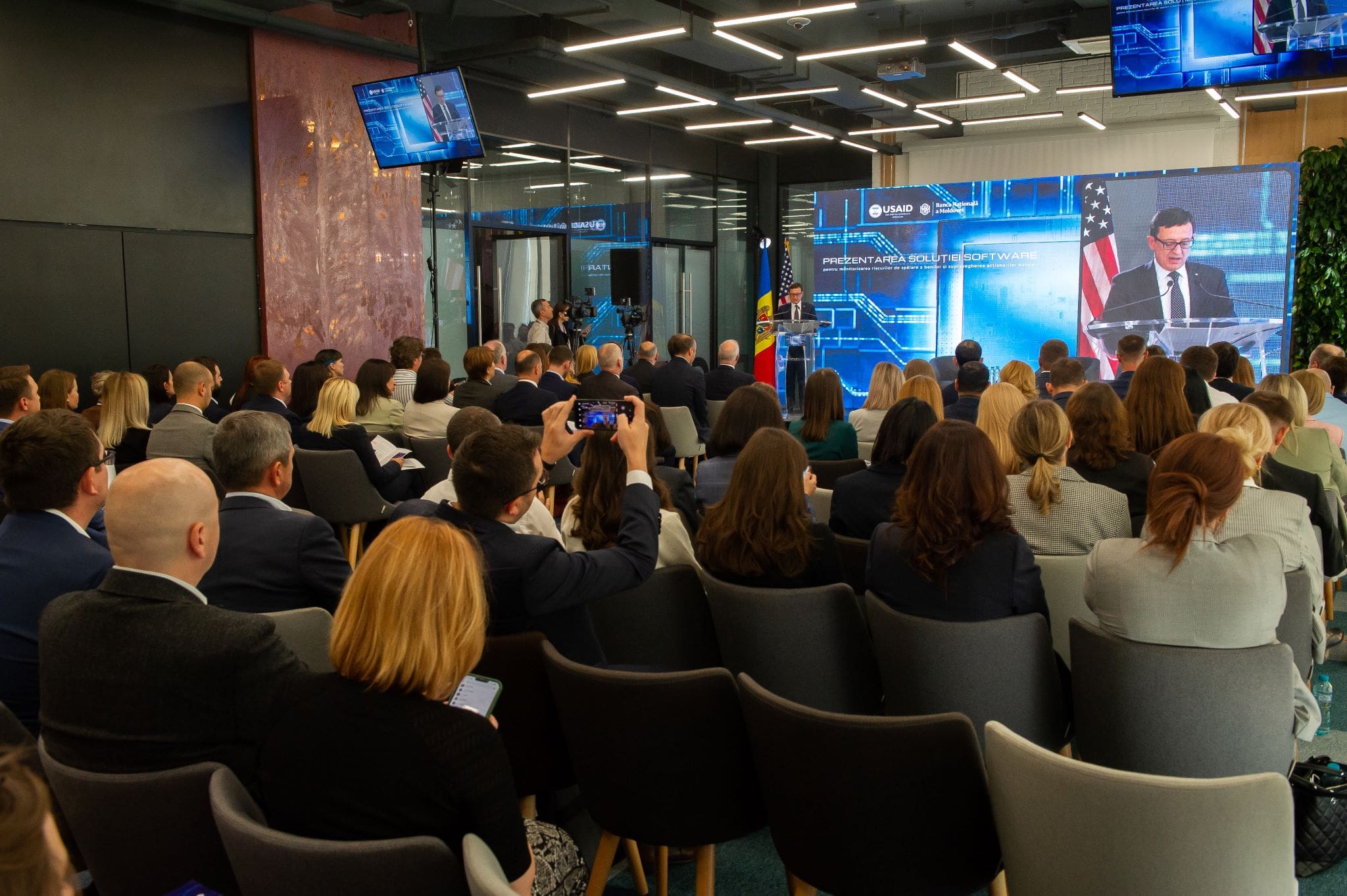 На презентации новой информационной системы присутствовал посол США в Молдове Кент Д. Логсдон, президент НБМ Октавиан Армашу, директор проекта FSTA Мэтью Маселларо.